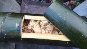 席に座る前から、竹を蒸す甘い香りがお店の外まで漂っていました。マリエさんが「これ、匂いだけでもう満足かも」と言ったくらい。食べる前から旅の記憶に残る一品でした。