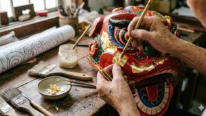職人さんの指先が迷いなく動くたびに、木を削る音や絵具の混ざる音が、心地よいリズムとなって耳に届きました。