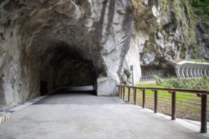 この遊歩道は、かつて日本統治時代に開削された道路の一部。大理石の断崖を削り、トンネルを掘って作られた道は、当時の技術力の高さを物語っています。現在はヘルメットの着用が推奨されており、ビジターセンターで無料貸し出しもあります。